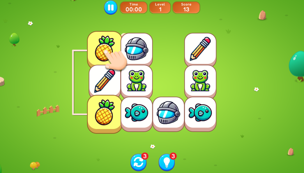 - Connection Rule: Find two identical icons. They can be eliminated if they can be connected by a line that turns no more than 2 times (maximum 3 straight lines) and is not blocked by other tiles.