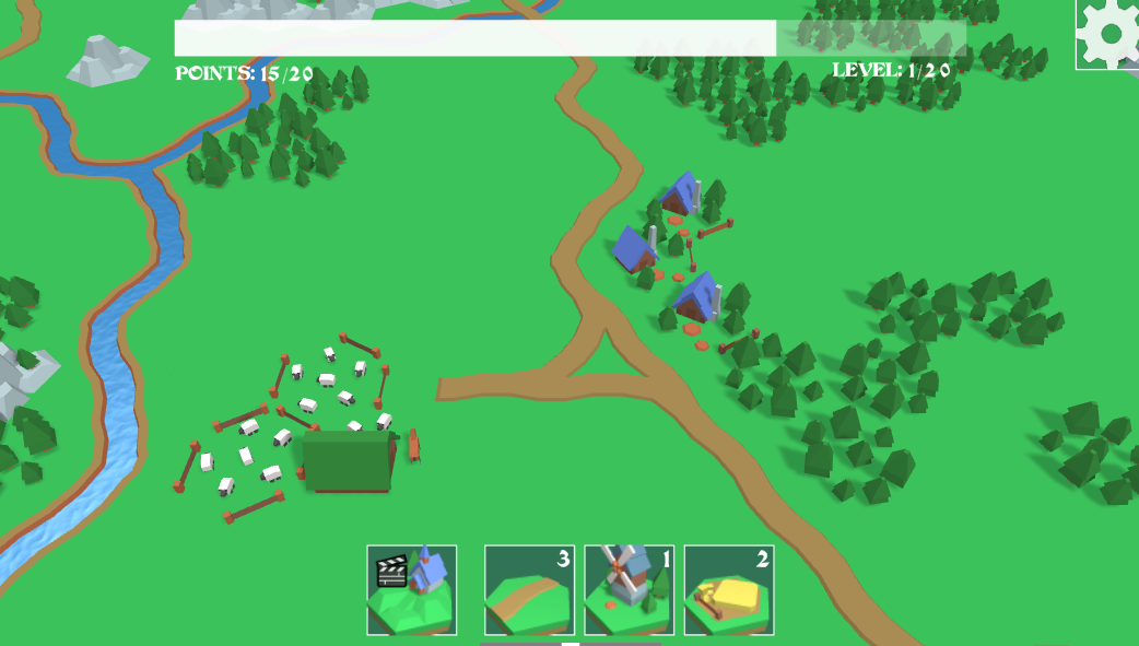 "Village Builder" is a puzzle game about evolving a civilization on a limited grid. Starting with an empty plot of land, the game provides you with basic natural elements (like grass or bushes). You must place them on the board and use the "Match-3" rule to evolve low-tier objects into advanced structures. Your goal is to build the grandest castle possible and score high points before the board fills up completely.